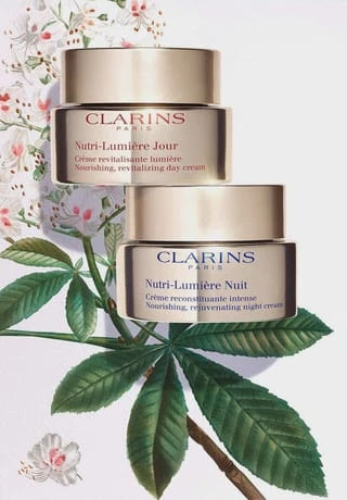Nährende, revitalisierende Anti-Age Tagescreme – Für jeden Hauttyp Innovation Pro-Ageing Nutrition Clarins. Die Laboratoires Clarins haben ein kraftvolles Aktivstoff-Duo entwickelt, das der Haut neue Leuchtkraft verleiht. Gewonnen aus der Rosskastanie, sind biologische Blütenextrakte und Eszine – aktive Moleküle aus der Frucht – aufgrund ihrer Wirkung auf das Mikronährstoffnetzwerk anerkannt. Dieses Vital-Duo, hervorgegangen aus der Expertise der Laboratoires Clarins, optimiert die Verteilung der Nährstoffe in der Haut. Sie ist besser genährt und wieder voller Leuchtkraft. Die gehaltvoll schmelzende Creme-in-Öl-Textur von Nutri-Lumière Jour ist ideal, um nährstoffarme Haut zu revitalisieren, intensiv zu nähren und ihre Leuchtkraft zu wecken. Sie ist für jeden Hauttyp geeignet.