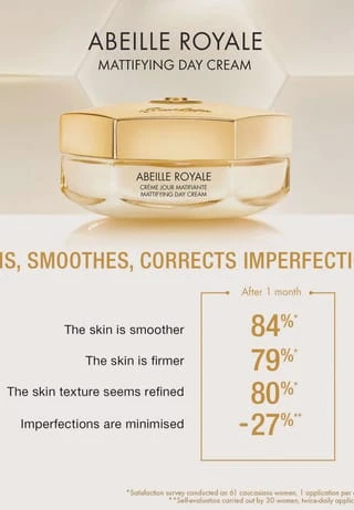 Die spezielle Produktformel der Creme trägt dazu bei, Mischhaut und ölige Haut wieder ins Gleichgewicht zu bringen. Tag für Tag werden die Poren verfeinert, das gesamte Hautbild wirkt feiner und der Teint gleichmäßiger. Die leichte Cremetextur verschmilzt mit der Haut und hinterlässt ein mattes Finish. Im Namen der Schönheit bekennt sich Guerlain zu mehr Nachhaltigkeit. Dieses Produkt ist für alle Hauttypen, auch für empfindliche Haut, geeignet. Guerlains exklusiver Imker und Honiglieferant auf der Insel Ouessant hat sich dem Schutz der Bienen verschrieben. Die Verpackung wurde besonders umweltfreundlich konzipiert. Made in France in La Ruche. Dieser Produktionsstandort von Guerlain erfüllt höchste Umweltschutzstandards.
