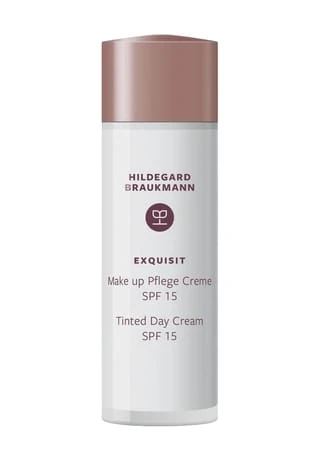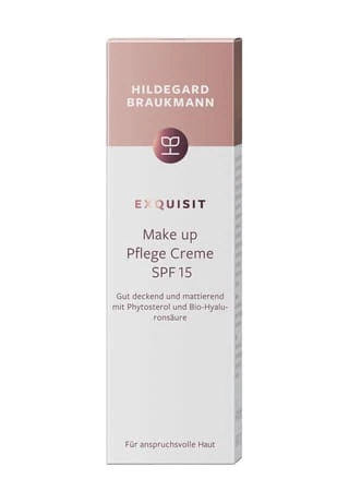 Reichhaltige Make-up Pflege Creme mit Lichtschutz 15 für die anspruchsvolle Haut. Exquisit Make-up Pflege Creme enthält neben mineralischen Pigmenten die wertvollen Pflegesubstanzen Phytosterol und Olivenwachs. Dazu eine bewährte Kombination der Feuchtigkeitsspender Akazien- „Kollagen“ und Bio-Hyaluronsäure. Für eine glatte, geschmeidige Haut und einen natürlichen Teint. Wirkstoffe: Bio-Hyaluronsäure. Hyaluronsäure ist ein natürlicher Bestandteil des Bindegewebes. Sie wirkt hautstraffend und glättend. Wir verwenden ausschließlich Hyaluronsäure, die biotechnologisch hergestellt wurde. Bio-Hyaluron kann sehr große Mengen Wasser im Stratum corneum binden und gibt diese erst nach mehreren Stunden ab – so ergibt sich eine hydratisierende Depotwirkung. Mit zunehmendem Alter nimmt die körpereigene Produktion von Hyaluron immer weiter ab. Die Haut verliert an Spannkraft, es bilden sich Linien und Fältchen. Pflegeprodukte mit Hyaluron können diese Hautveränderungen ausgleichen oder mildern. Arginin ist eine besondere Aminosäure. Arginin unterstützt die Regeneration des Feuchtigkeit bindenden Systems der Haut und wirkt darüber hinaus hautberuhigend. Glycerin wirkt effektiv hydratisierend. Es besitzt eine hervorragende Feuchthaltewirkung und stabilisiert die Barrierefunktion der Haut. Olivenwachs wird nach einem besonderen Verfahren aus Olivenöl als eine wasseraffine pflanzliche Butter hergestellt. Diese Pflanzenbutter spendet Feuchtigkeit und stärkt die Barrierefunktion der Haut. Mimosen-Wachs wird aus den Blüten der Silberakaziegewonnen. Nach einem patentierten Herstellungsverfahren wird das Mimosen-Wachs mit Jojoba- und Sonnenblumen-Wachs zu einer wasseraffinen pflanzlichen Butter kombiniert. Diese Pflanzenbutter spendet Feuchtigkeit, stärkt die Barrierefunktion der Haut und reduziert den transepidermalen Wasserverlust. Phytosterol ist ein Konzentrat der Wirksubstanzen von Avocado- und Olivenöl. Es hat feuchtigkeitsbewahrende Eigenschaften und wird mit Erfolg eingesetzt bei Hyperkeratosen, bei Atrophie der Haut und anderen Hautschäden. Phytosterol pflegt und schützt besonders trockene Haut. Karotin. (Provitamin A) ein Wirkstoff des Karottenöls ist Farbstoff und Hautschutzfaktor zugleich. Es fördert den Zellaufbau, fängt Sauerstoff-Radikale und unterstützt die Wirkung der Lichtschutzmittel. Akazien-Kollagen ist als pflanzliches Polysaccharid eine Alternative zu tierischem Kollagen. Es besitzt feuchtigkeitsspendende, feuchtigkeitsspeichernde und die Haut weich machende Eigenschaften. Spezial-Pigment apricot. Kleine Kügelchen aus mineralischem Silikat mit Soforteffekt: Der Trick ist, dass sie in die Falte hineinrollen, diese auffüllen und das einfallende Licht so diffus brechen, dass kein scharfer Schattenrand mehr zu sehen ist: Der Teint erscheint glatter und Fältchen werden optisch unsichtbar.
