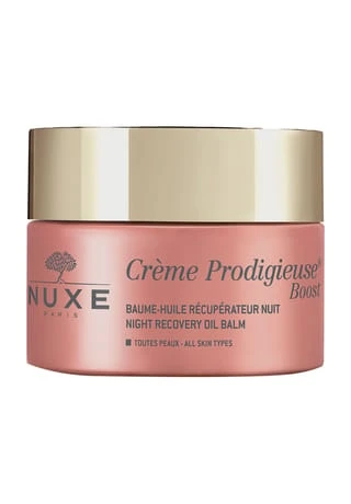 Mit dem Crème Prodigieuse® Boost Herstellende Öl-Balsam hat Nuxe einen antioxidativen Wirkstoffkomplex entwickelt, der die Haut im Schlaf regeneriert. Angereichert mit wertvollen Jasminblüten trägt die einzigartige Formulierung dazu bei, die negativen Auswirkungen des Alltags wie Stress, Müdigkeit und Umweltverschmutzungen zu reduzieren. Zugleich wird das natürliche Gleichgewicht der Haut geschont. Die einzigartige Cocooning-Textur mit nährendem Macadamia-Öl legt sich wie ein sanfter Pflegeschleier auf die Haut, ohne einen fettigen Film zu hinterlassen. Am Morgen ist die Haut energiegeladen und der Teint wirkt frisch und regeneriert.